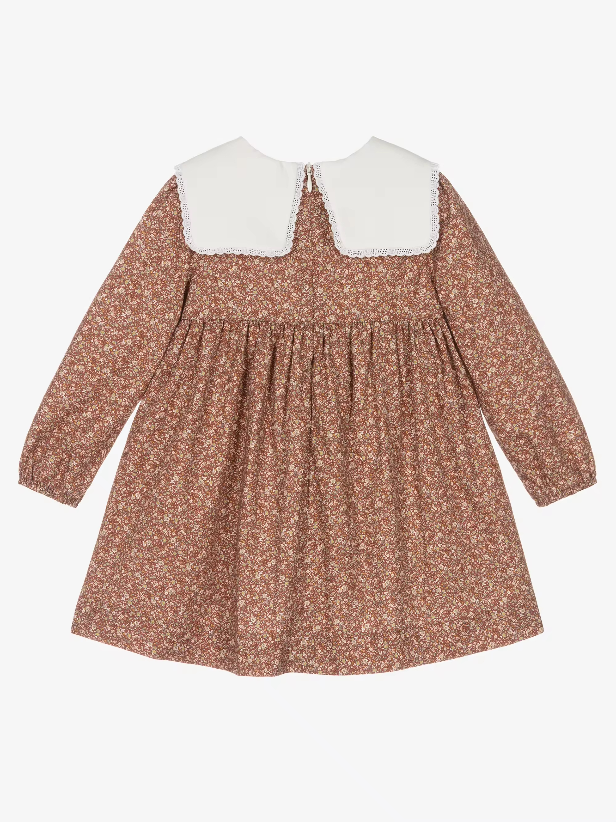 Custom Autumn Floral Print Toddler Girl Child Dresses With Big White Collar Long Sleeve Kids Cotton Dresses Factory