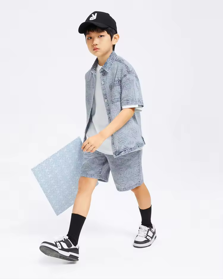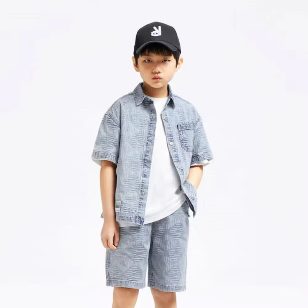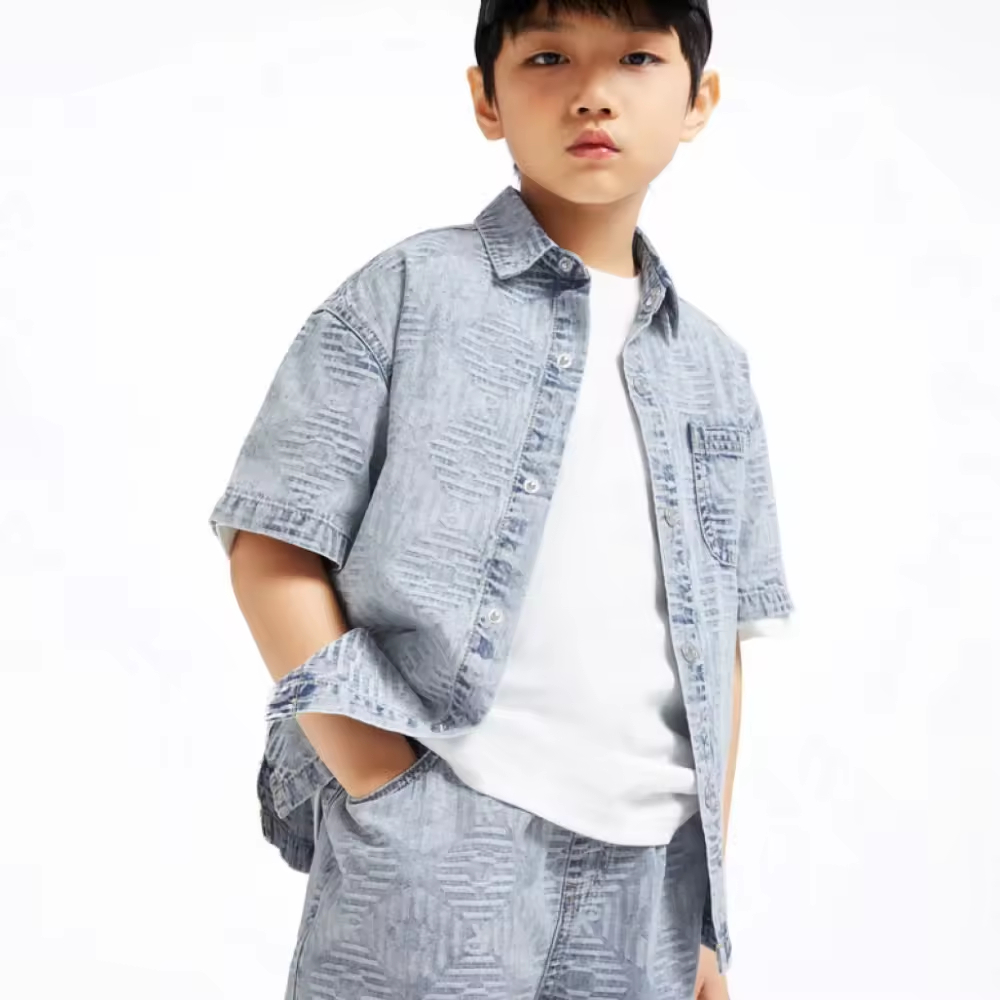 Wholesale Light Blue Linen Short Sleeve Boys T-Shirts & Polo Shirts Fashionable Casual Style Quick Dry Jersey for Kids