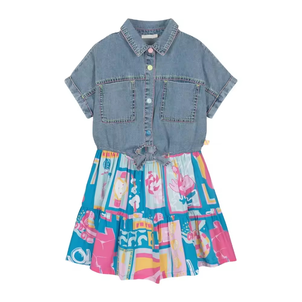 Factory 28 Years Experience ODM Children's Summer Dresses for Girls Woven Fabric with Button Decoration