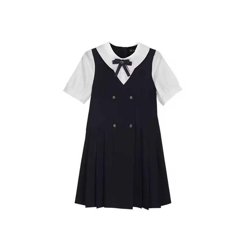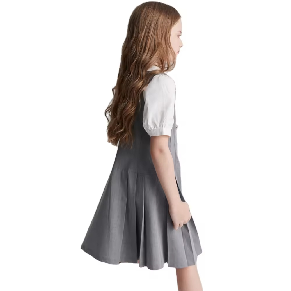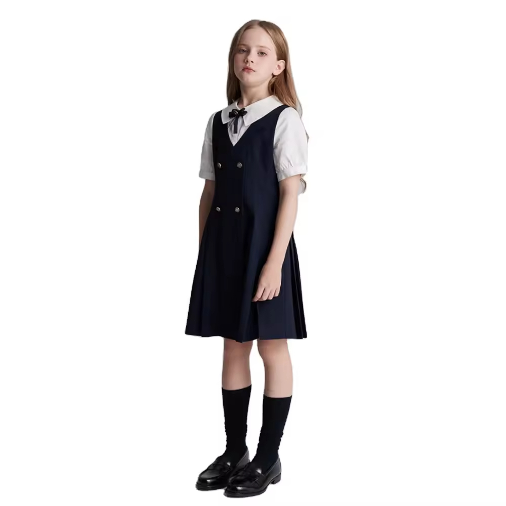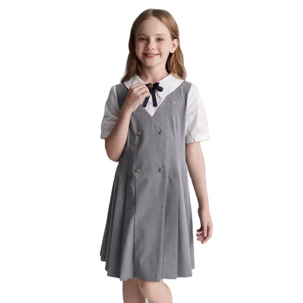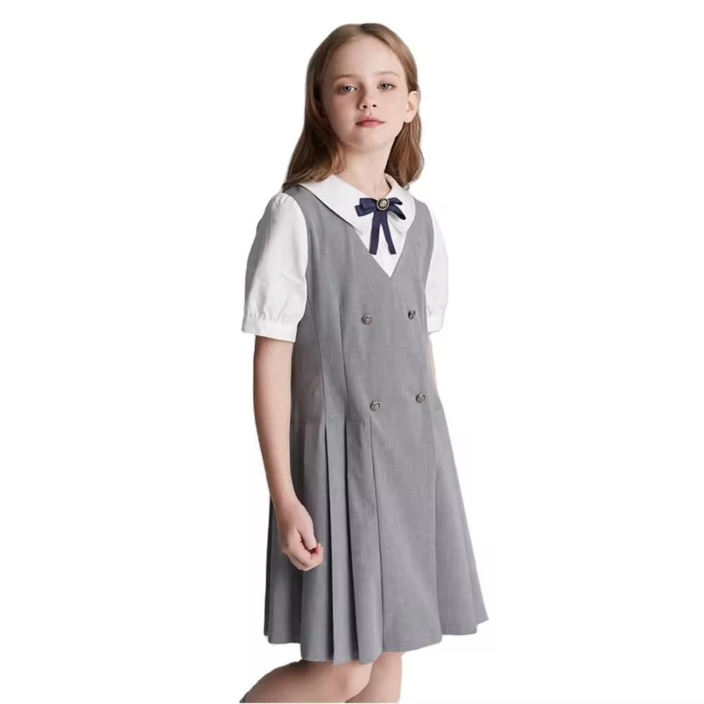 OEM School Uniform Dress for Kids With Pleat Skirt Short Sleeve Girl Polo Dress Red