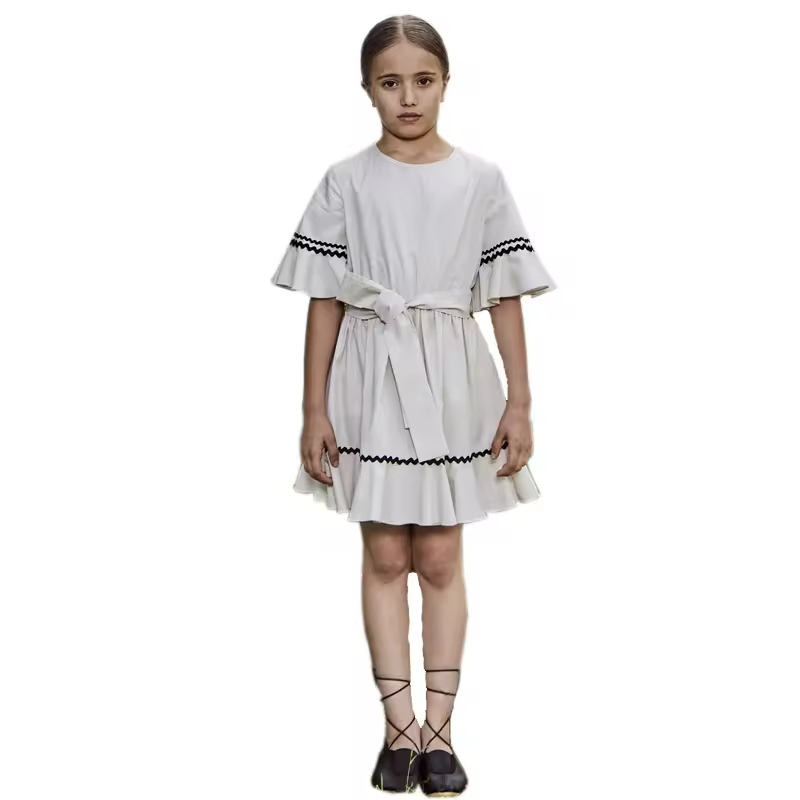 1.Girls Dress in White/black color, quality cotton fabric and a vintage style.