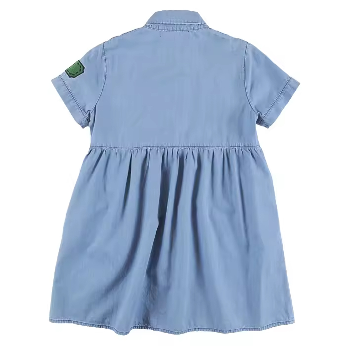 Casual Denim Dresses for Children Short Sleeve Patchwork Design With Appliques Sustainable Summer Spring Baby Girl Dress 2024