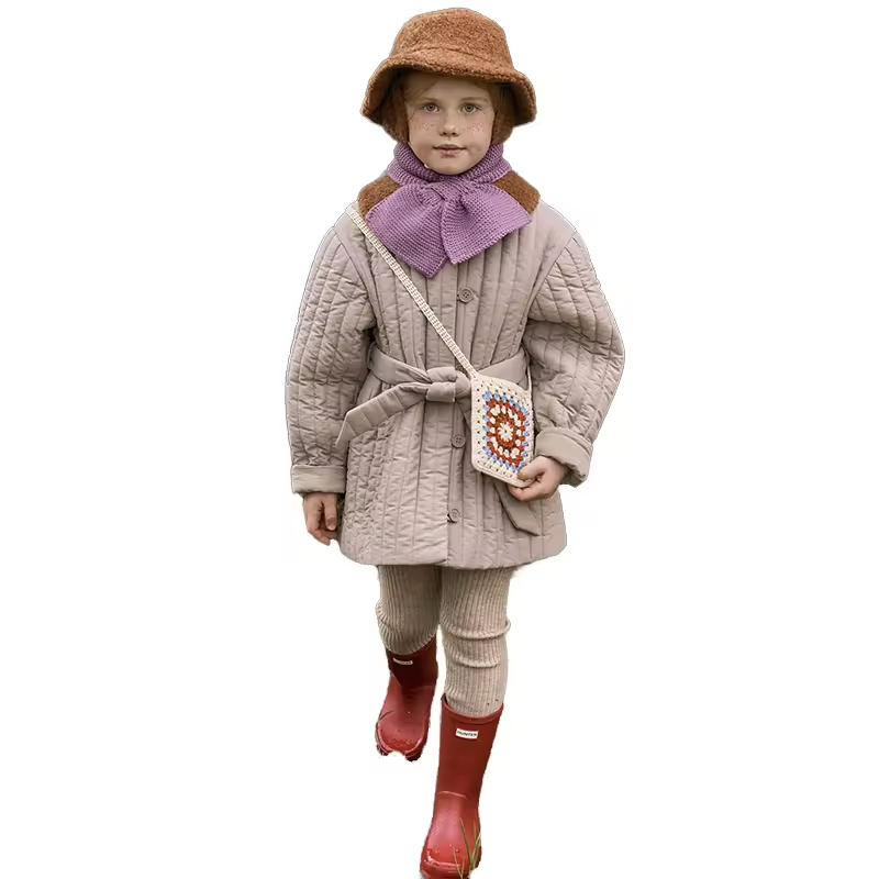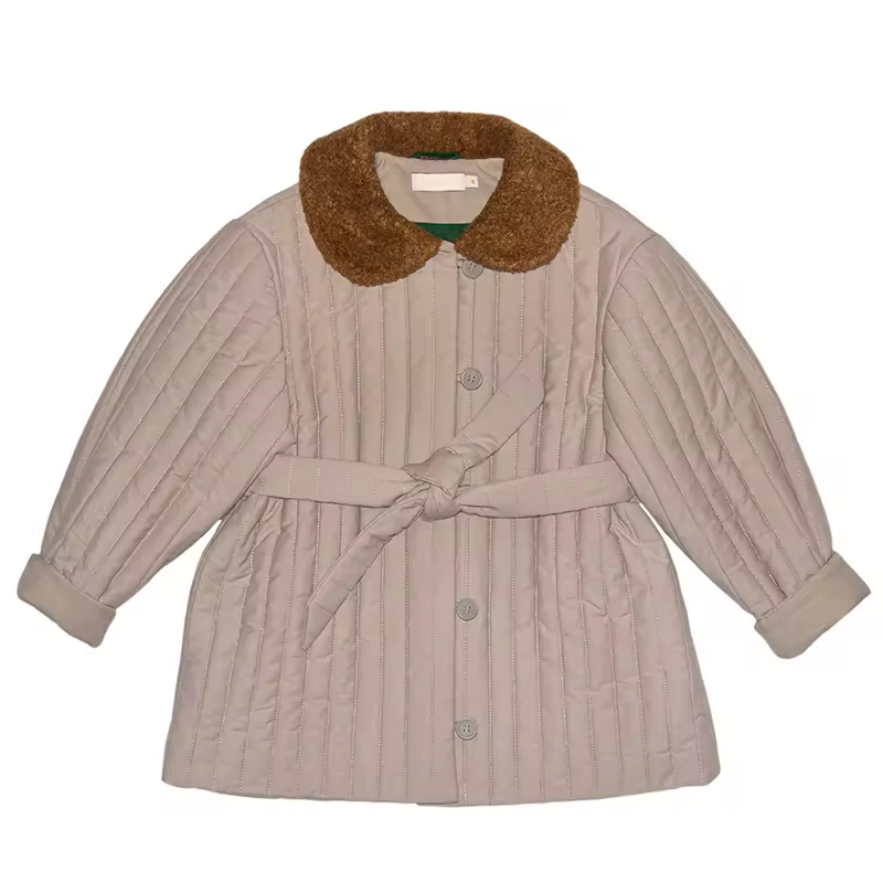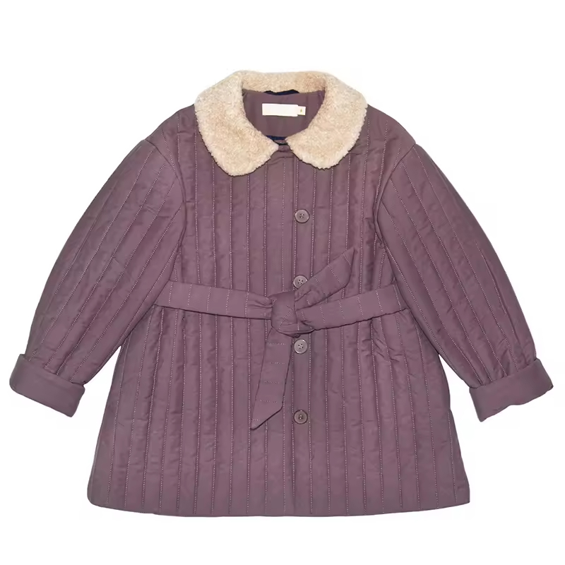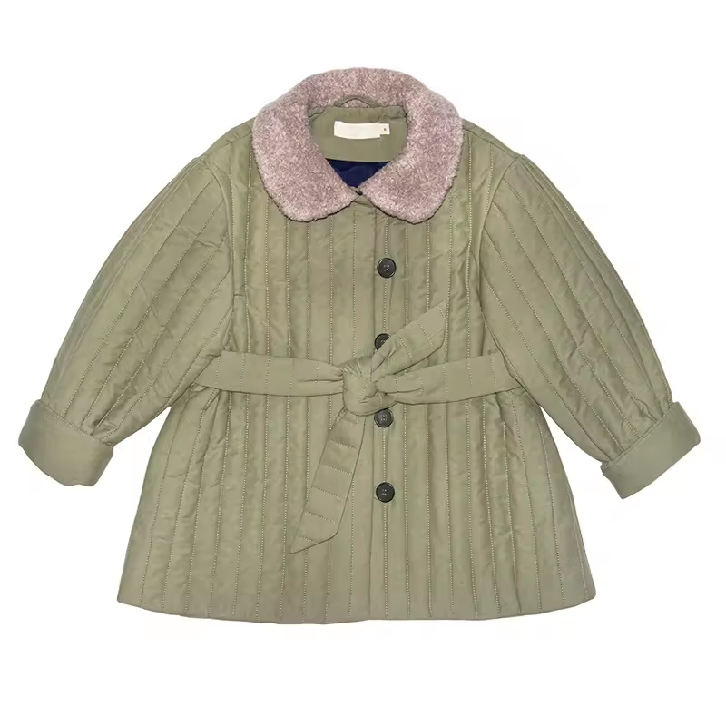 2025 Designer Children Jacket Girls Winter Cotton Padded Lamb Collar Kids Coats With Waistbelt