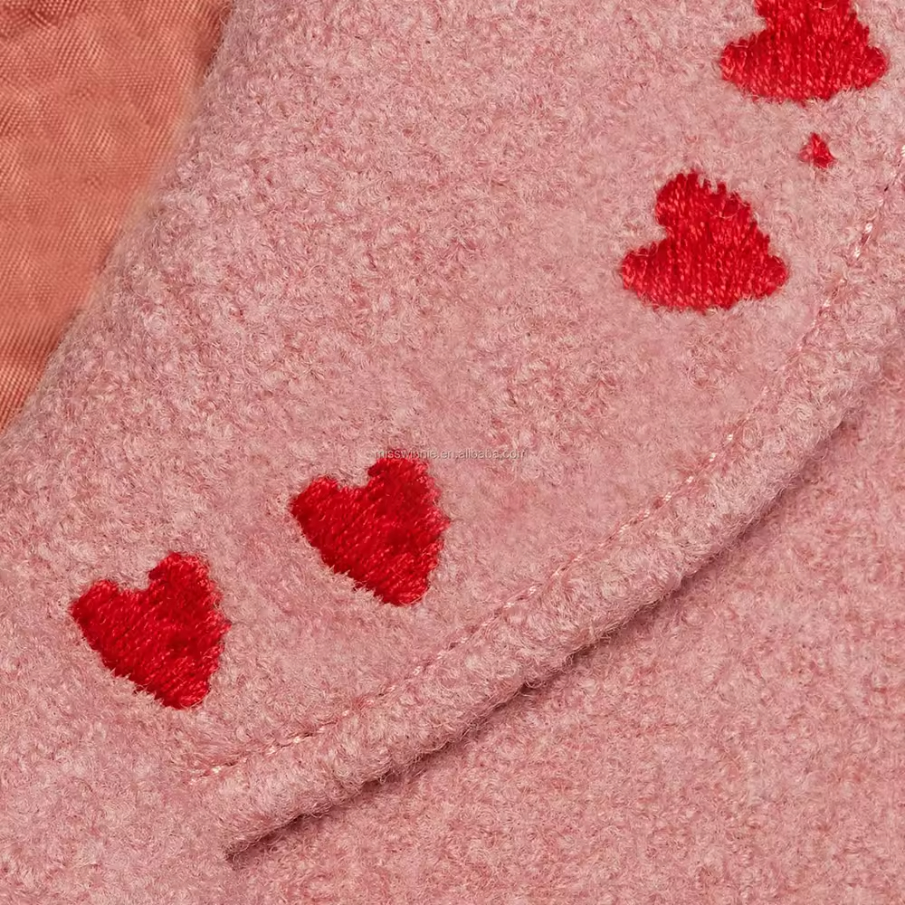 Customized Private Label Brand Wool Kids Winter Coat Girl Coats With Embroidery on Collar