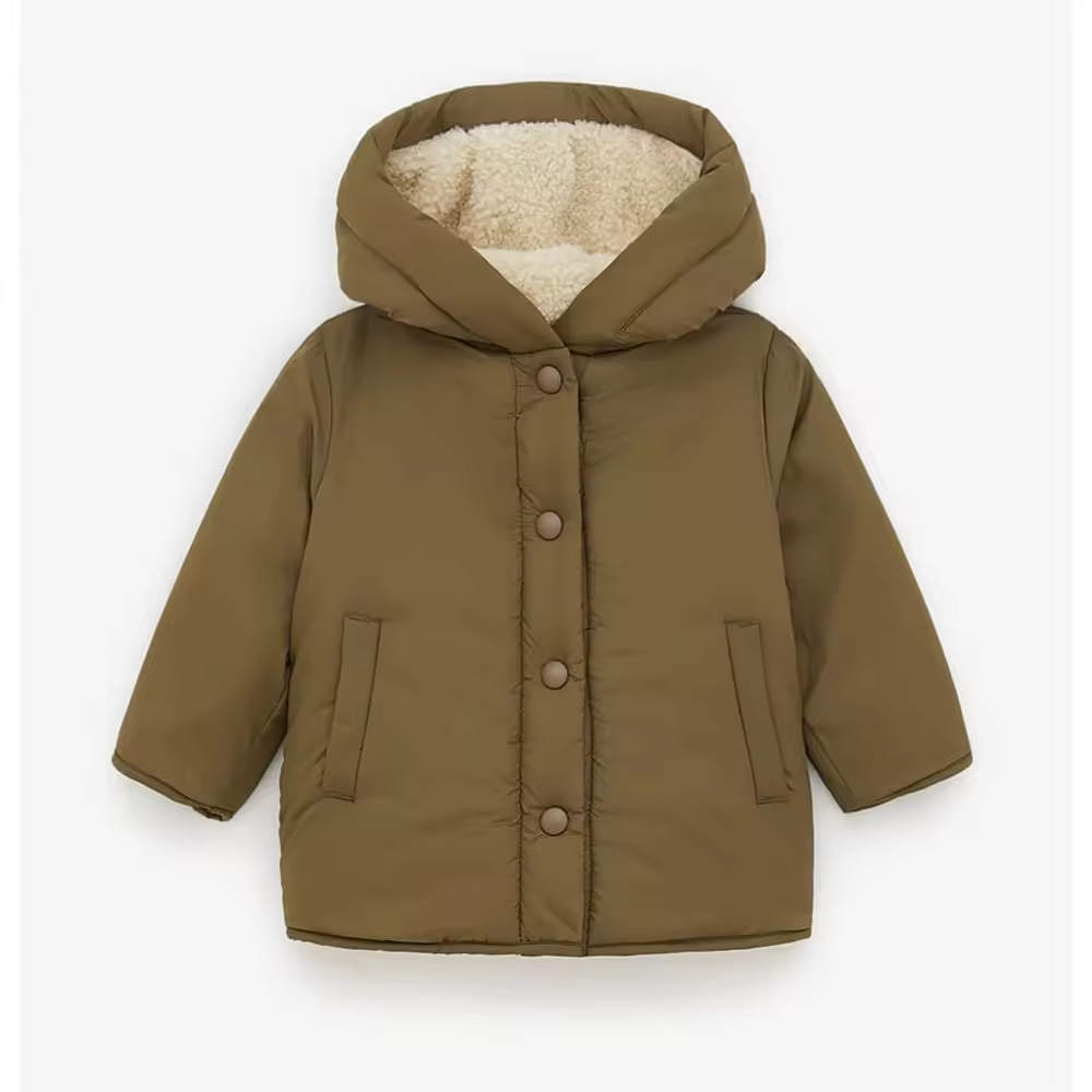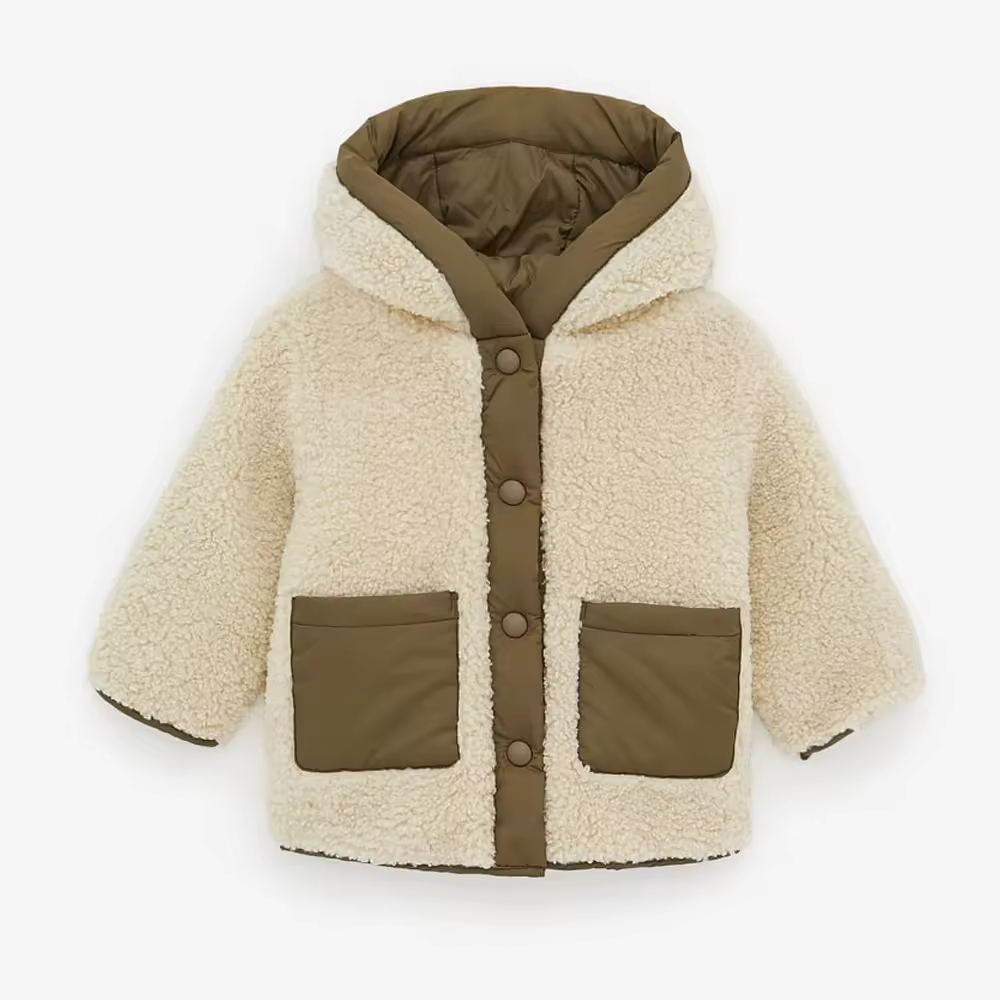 /High Quality Reversible Fur Hooded Coat for Baby Boys Solid Pattern Winter Coat
