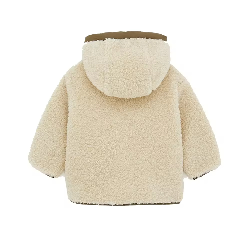 High Quality Reversible Fur Hooded Coat for Baby Boys Solid Pattern Winter Coat