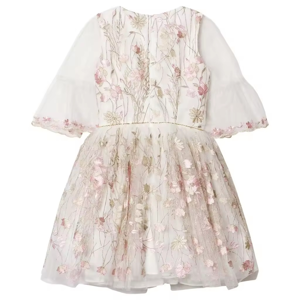 2024 New Arrival Lace Children Girls Dresses With Hand Embroidery for Birthday Wedding High Quality Boutique Baby Girl Dress