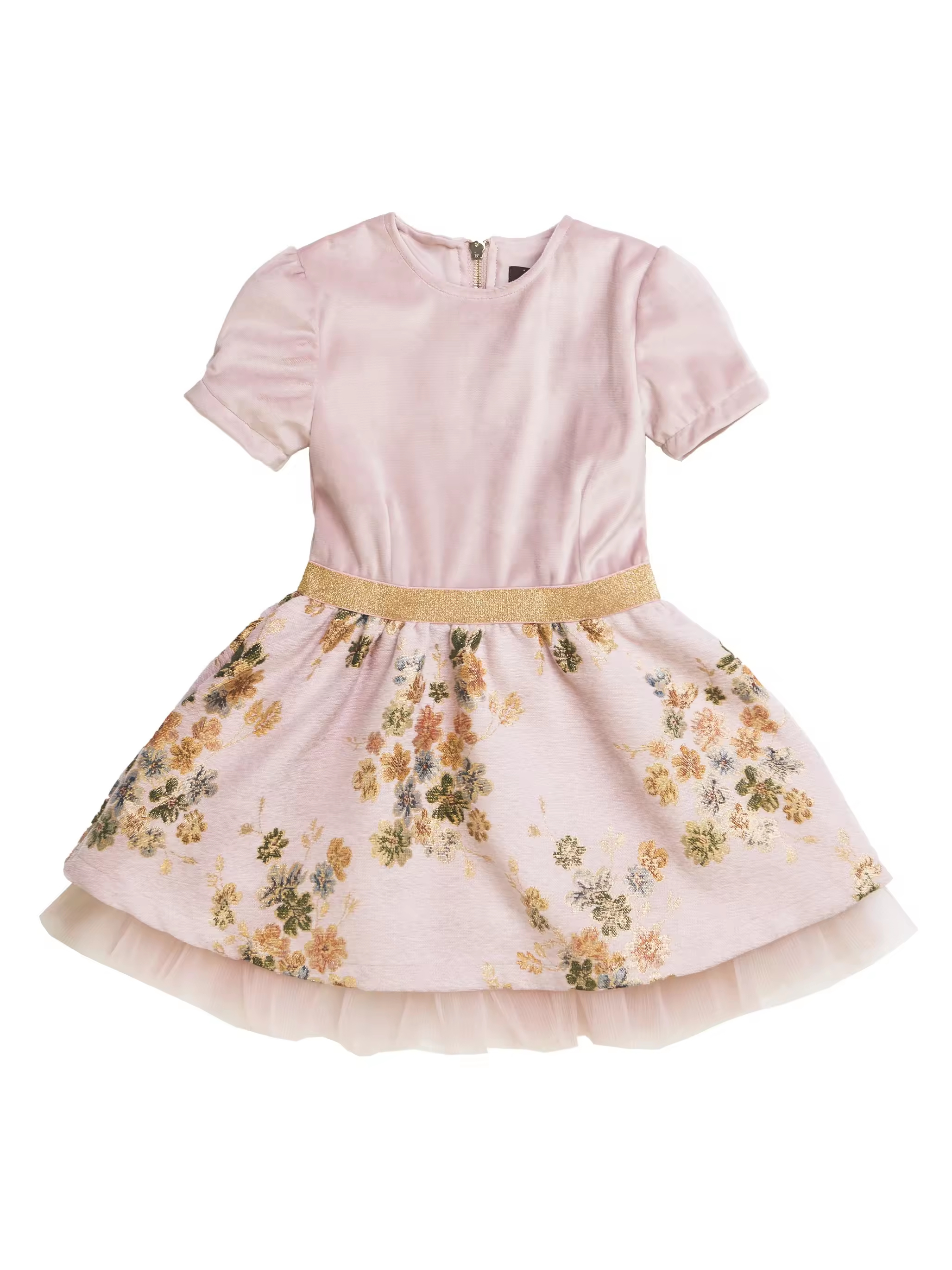 /2024 Custom High Quality pink Velvet Elegant Children Girls Dresses With Flower for Party Western Style Kids Clothing Factory