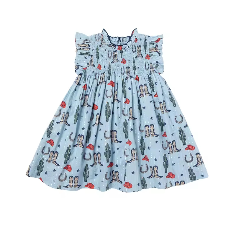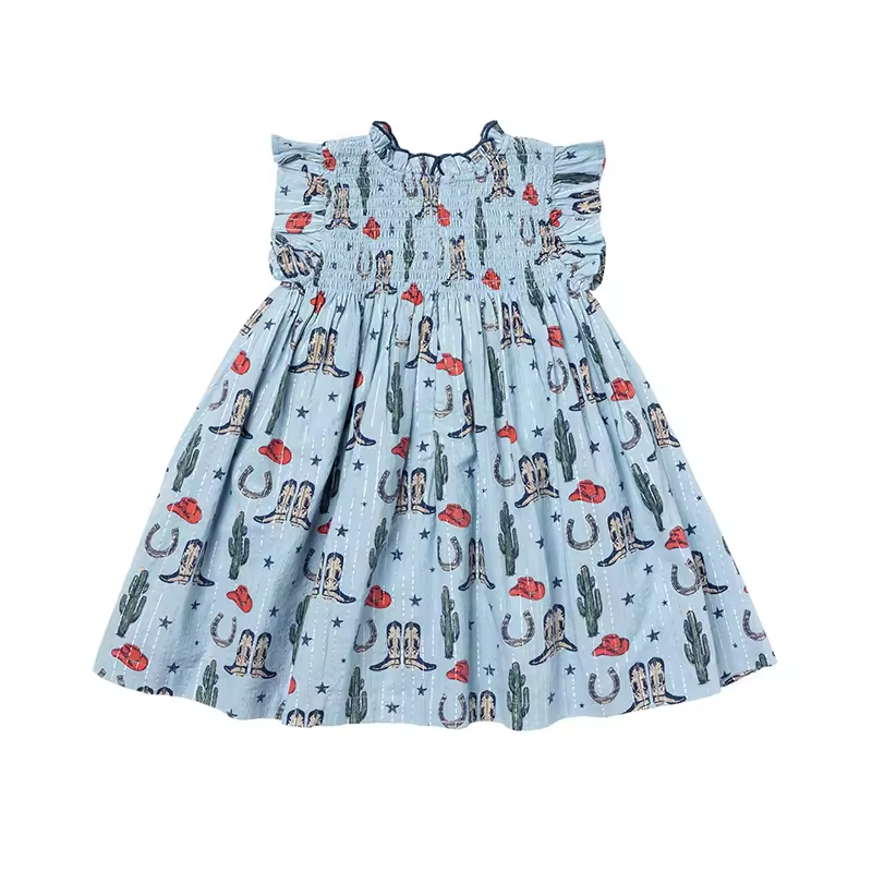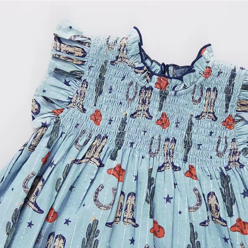 Factory 28 Years Experience ODM Children's Summer Dresses for Girls Woven Fabric with Button Decoration