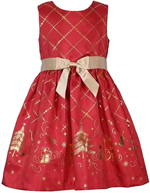 Hot Sell Kids Clothes Long Sleeves Baby Girls Dresses Kids for Golden and Red Color Christmas Printing