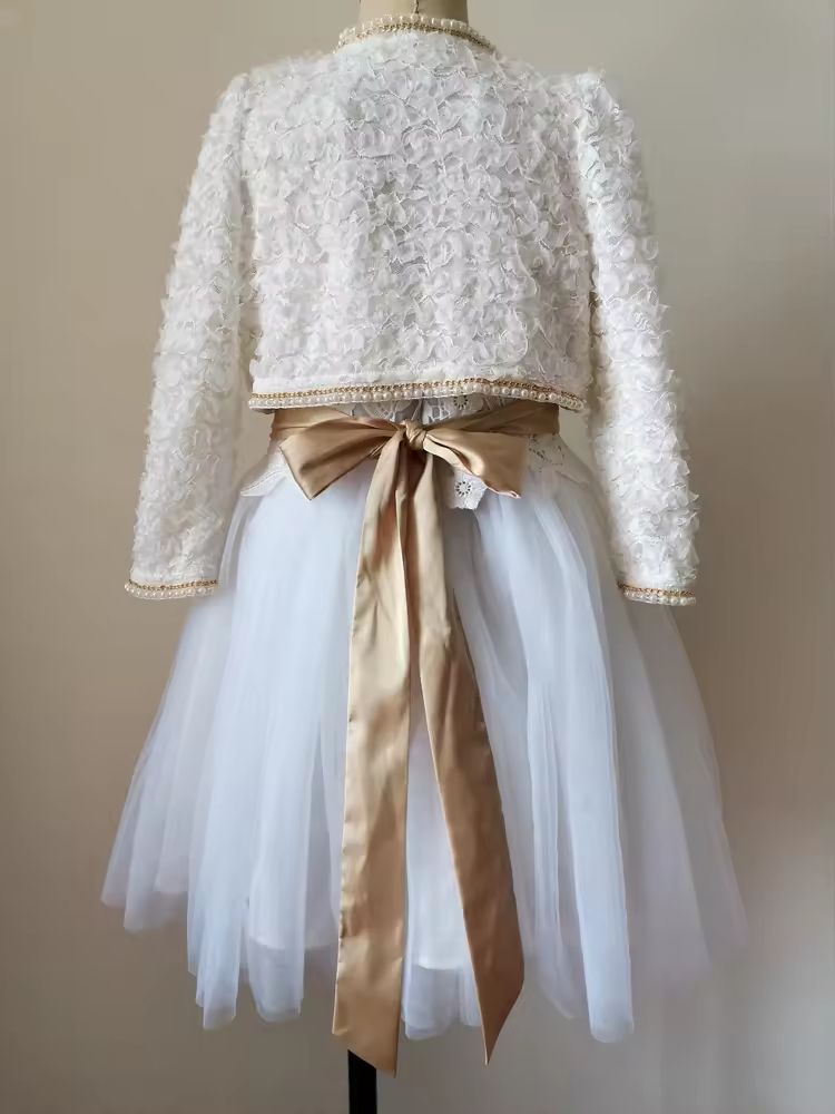 1.Girls Dress in White/black color, quality cotton fabric and a vintage style.
