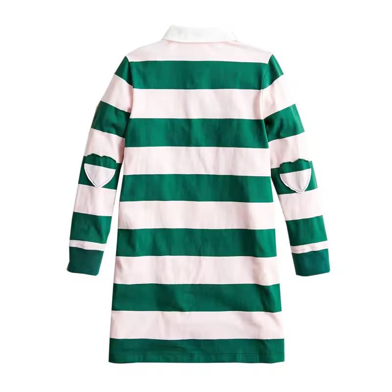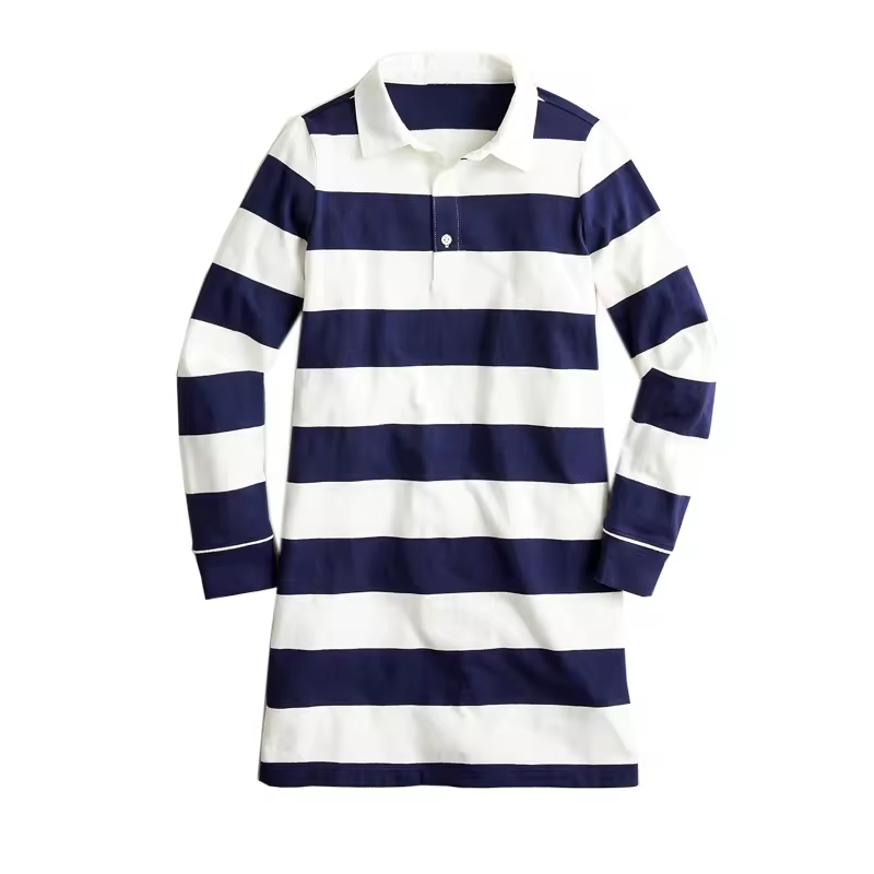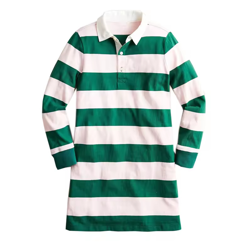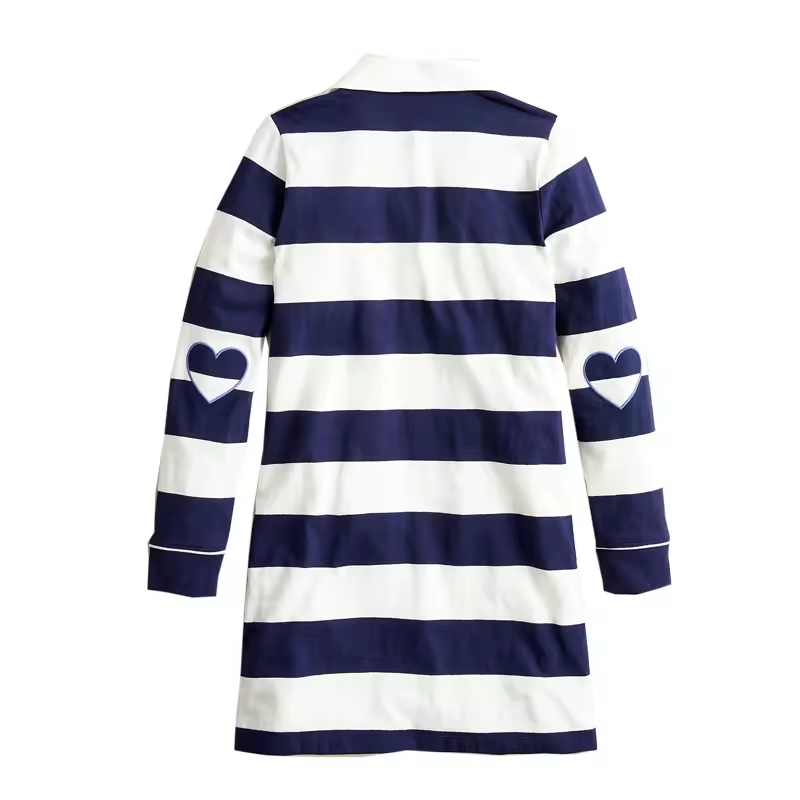 /Customized Denim Women Rugby Dress with Polo Collar Halter Design for Mom Me Cotton Spandex Stripes ODM for Autumn Season Kids