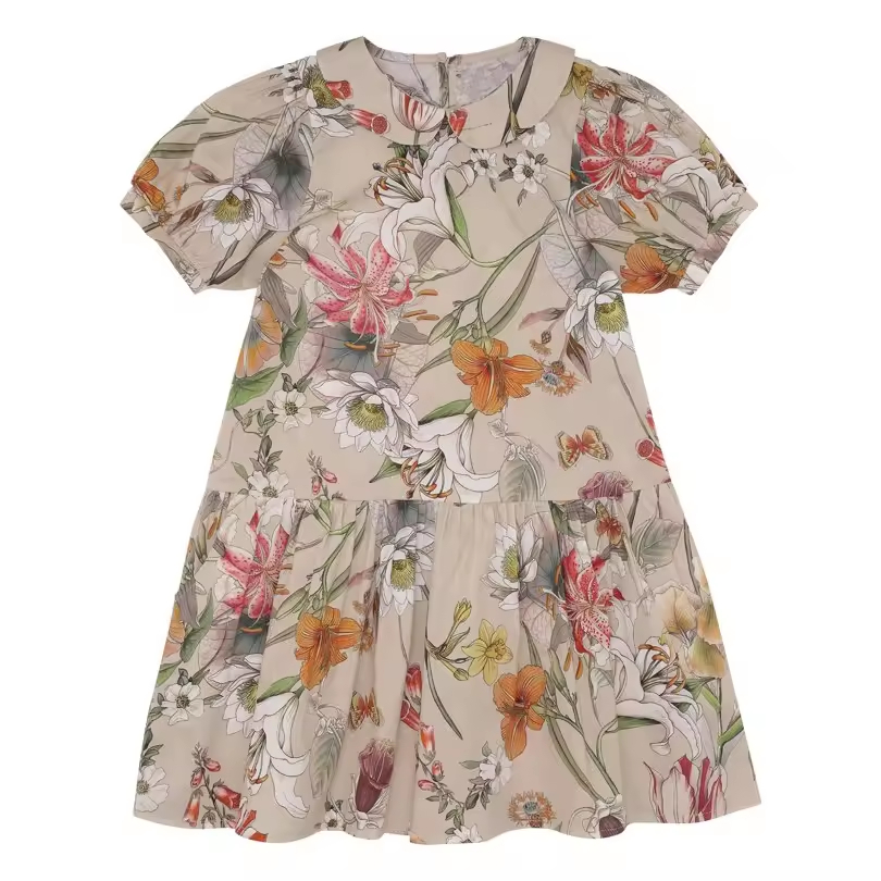 /Customized Floral Printing Kids Clothes 2025 Summer Girls Dress Kids Short Sleeve Baby Girl Dress Summer With Peter Pan Collar