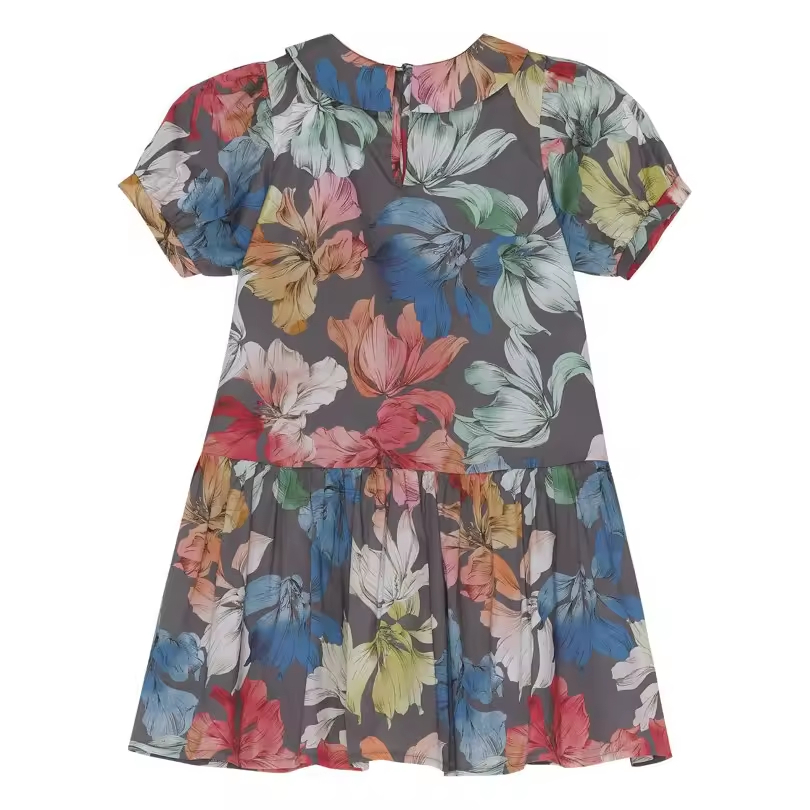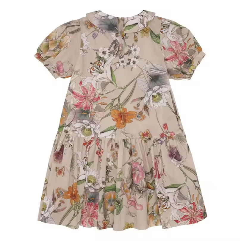 Customized Floral Printing Kids Clothes 2025 Summer Girls Dress Kids Short Sleeve Baby Girl Dress Summer With Peter Pan Collar