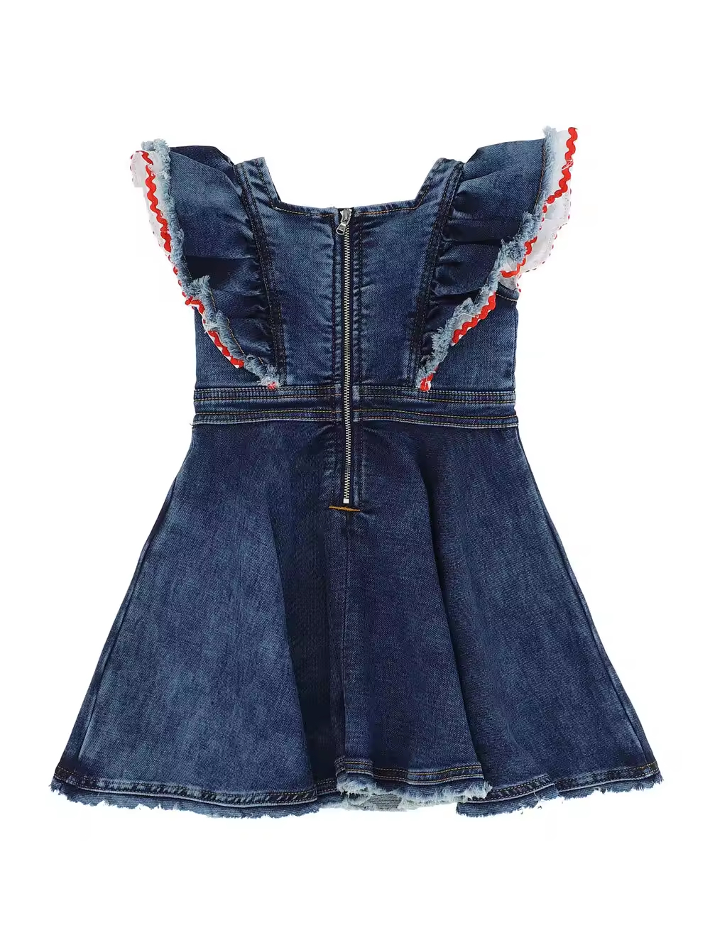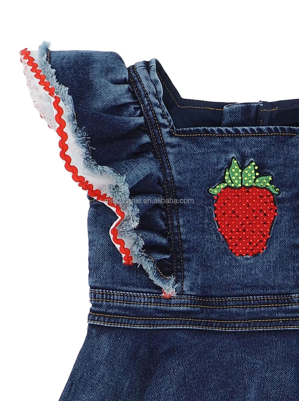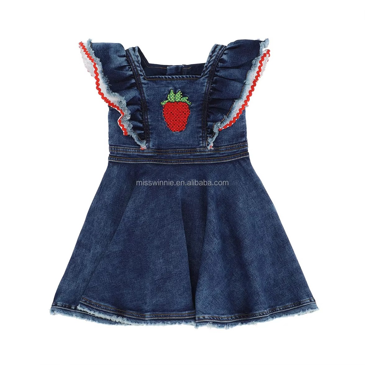 Boutique European Style Solid Pattern Denim Dress for Baby Girls Summer Washing Clothing with Embroidery Patch