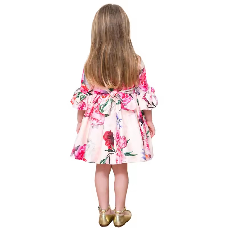 Children Dress Pretty Flowers Design Customized Prints Latest Party Wear Dresses for Girls