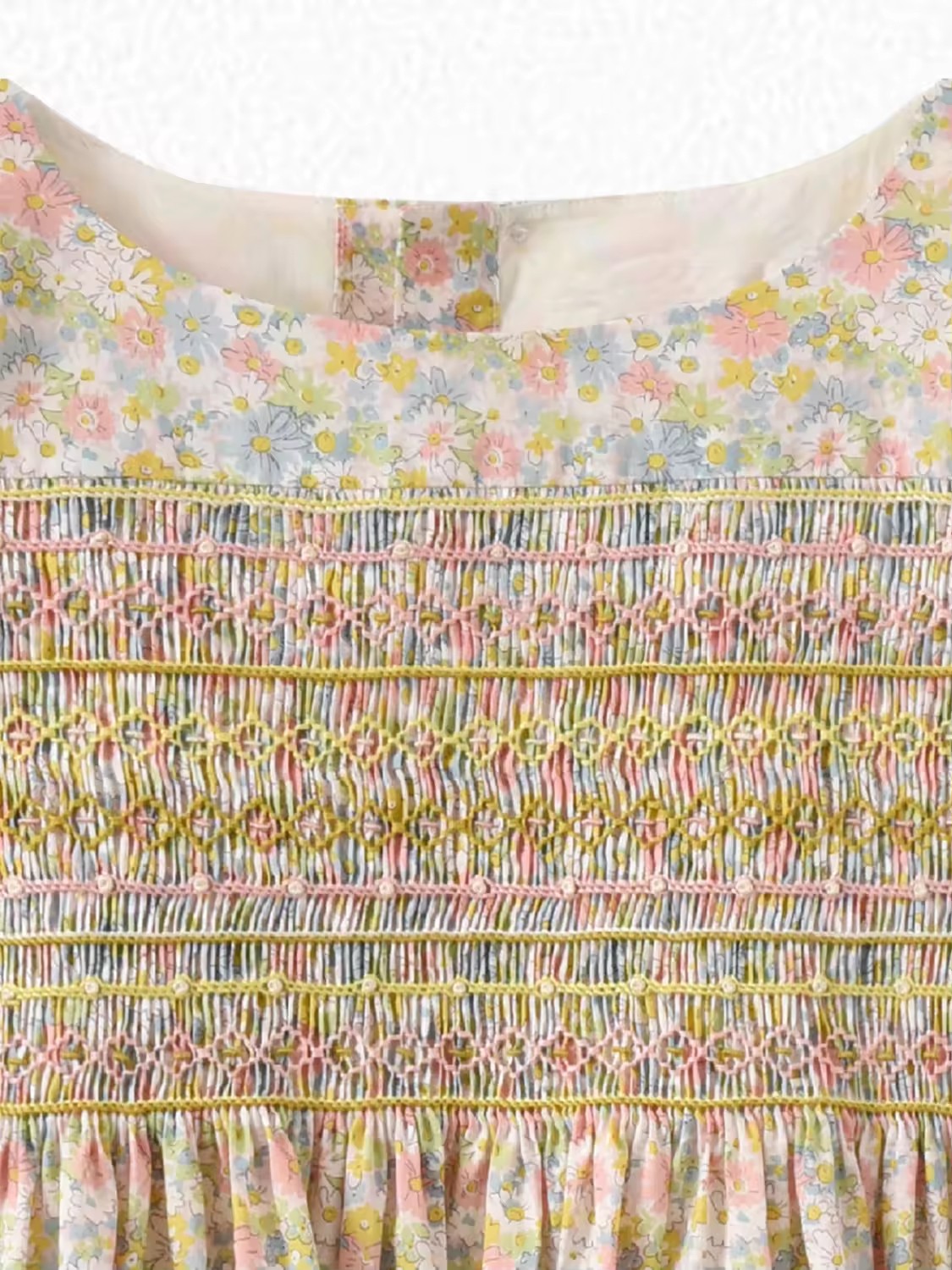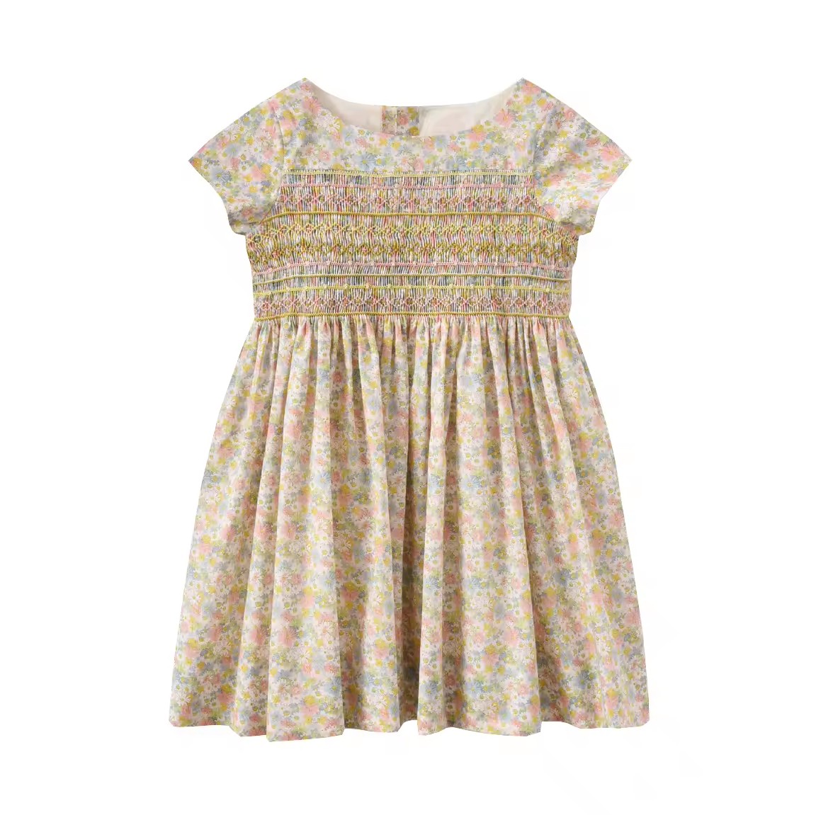 Customized Brand Floral Print Summer Smocking 2025 Girls' New Arrivals Short Dresses Girls' Korean Dresses