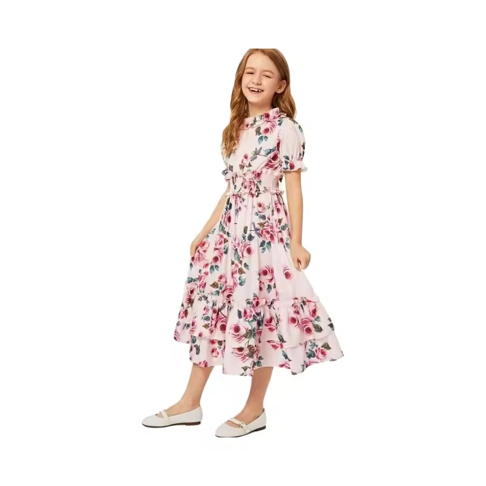 Custom Woven Cotton or Polyester Floral Print Dress for Girls 6-12 Summer Child Fashion Collection