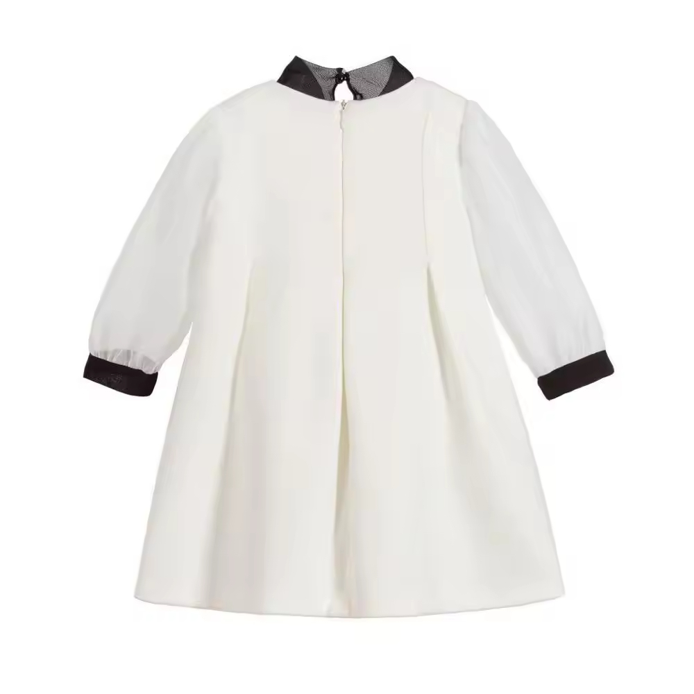 1.Girls Dress in White/black color, quality cotton fabric and a vintage style.