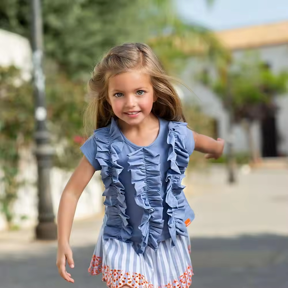 Miss Schoolgirl A-Line Girls Casual Summer Skirts Breathable Knee-Length O-Neck Design Short Sleeve OEM Service Available