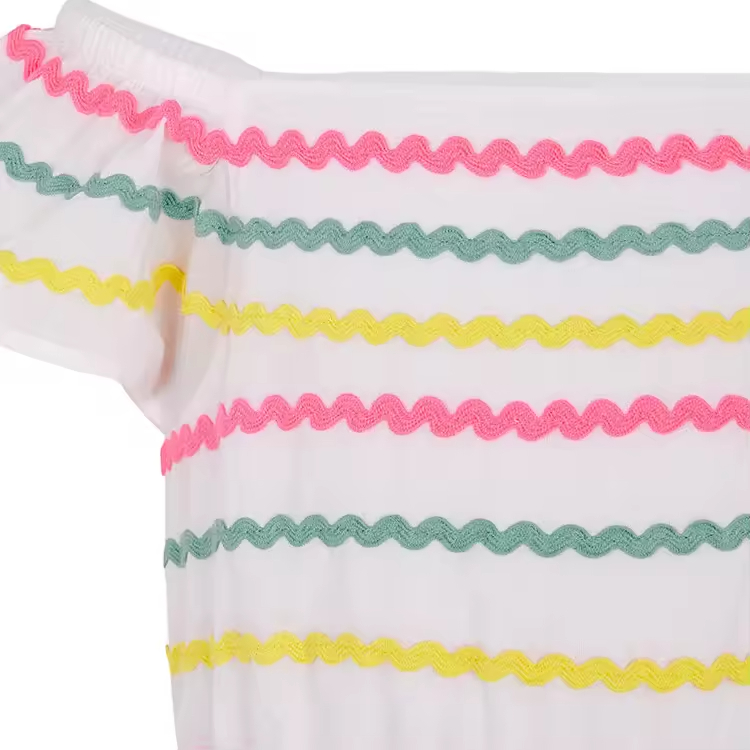 Guangzhou Wholesale Simple White Color Fashion Party Maxi Girl's Dresses off Shoulder Different Color Ribbon Baby Girl Dress