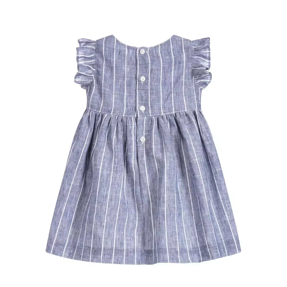 Guangzhou Wholesale Korean Cotton Linen Fashionable Stripes Dress for Baby Girls