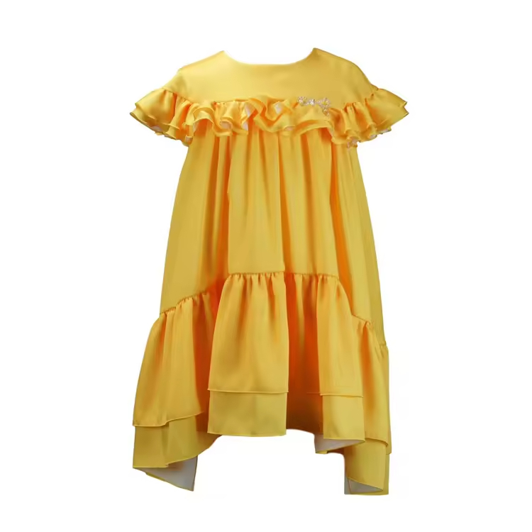 /Latest Fashion Design Yellow Color Kids Clothes Girls Dresses Ruffles Elegant Summer Princess Party Girl Dress 2025