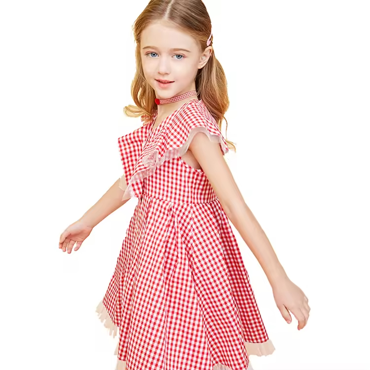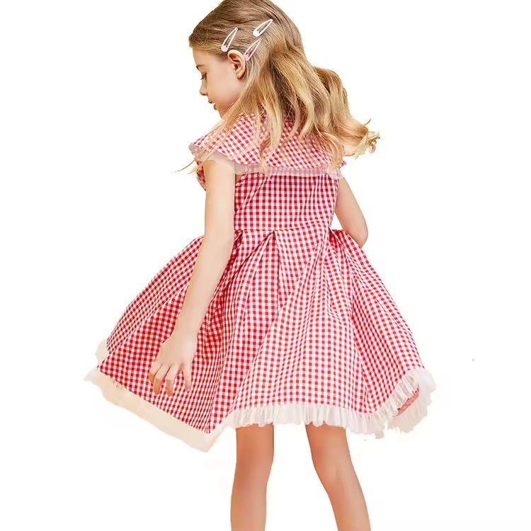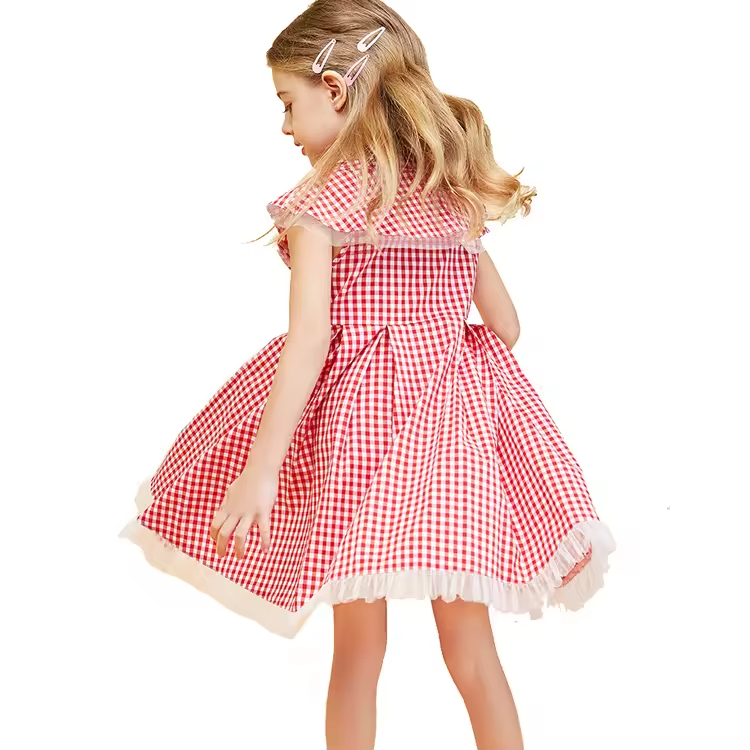 Best Selling High End Design Kid Summer Clothes Girls Dress 2025 Custom Elegant Black Color and Plaid Ruffles Baby Girl Dresses