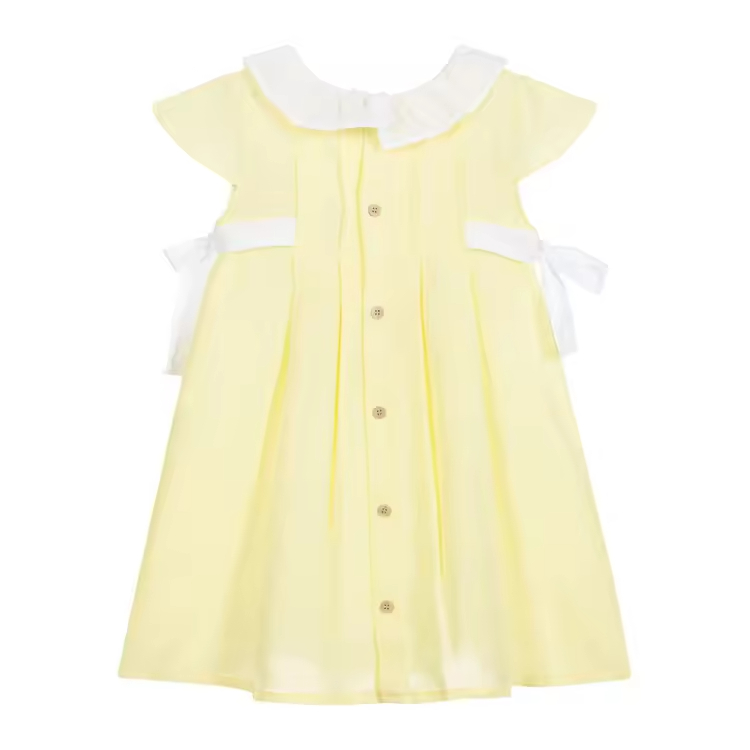 /Latest Simple Classic Cotton Frock Designs Yellow Sleeveless Baby Girl Summer Dress Fashion Bow Kids Clothes Girls Dresses