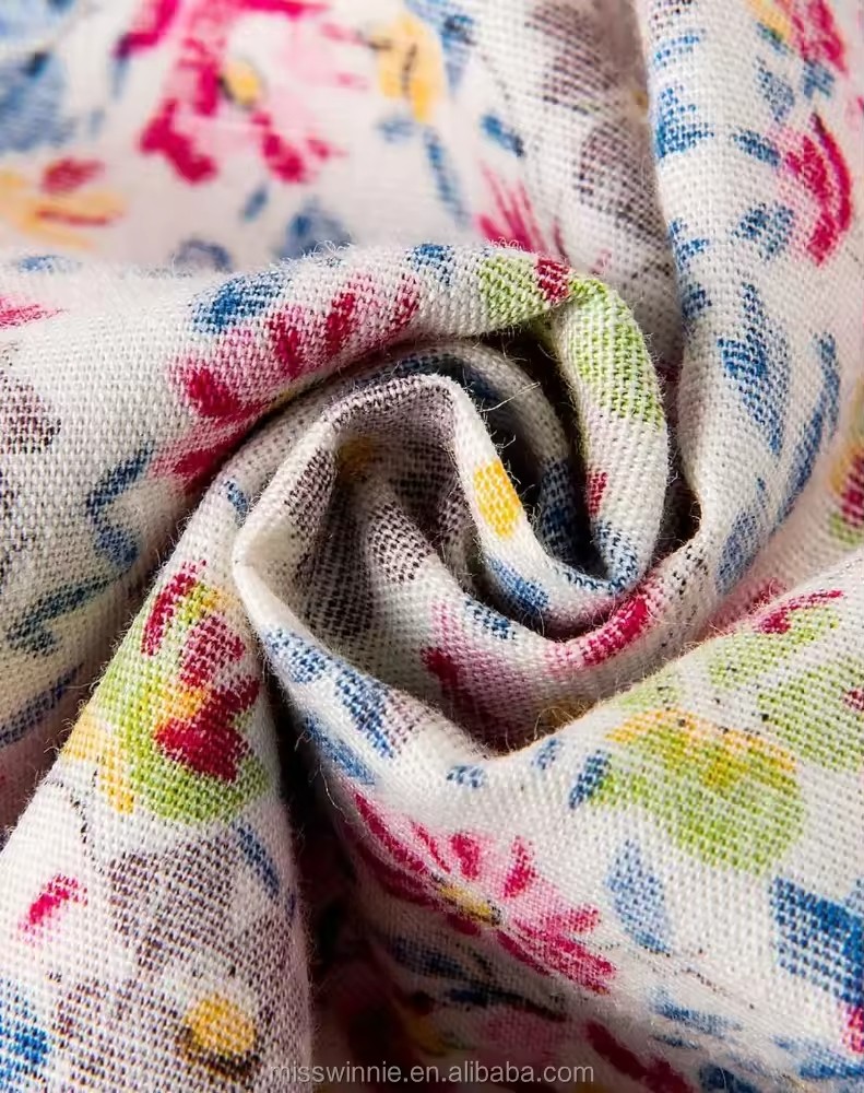Long Sleeve Cotton Printed Girls Dresses Elegant Casual Knee-Length Woven Fabric for Teenage Girls in Summer