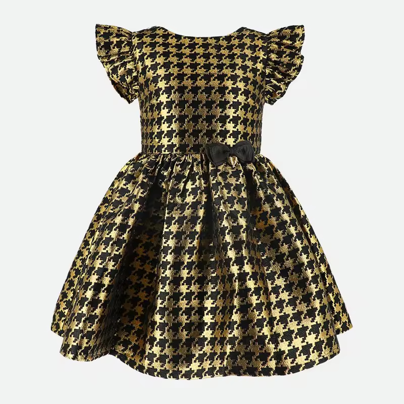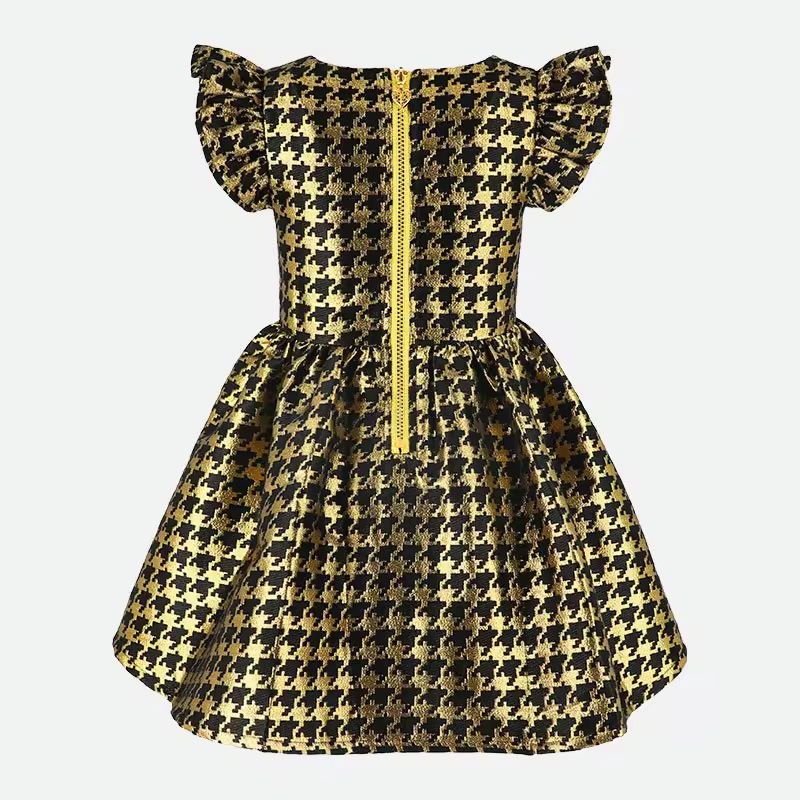 Best Selling High End Design Kid Summer Clothes Girls Dress 2025 Custom Elegant Black Color and Plaid Ruffles Baby Girl Dresses