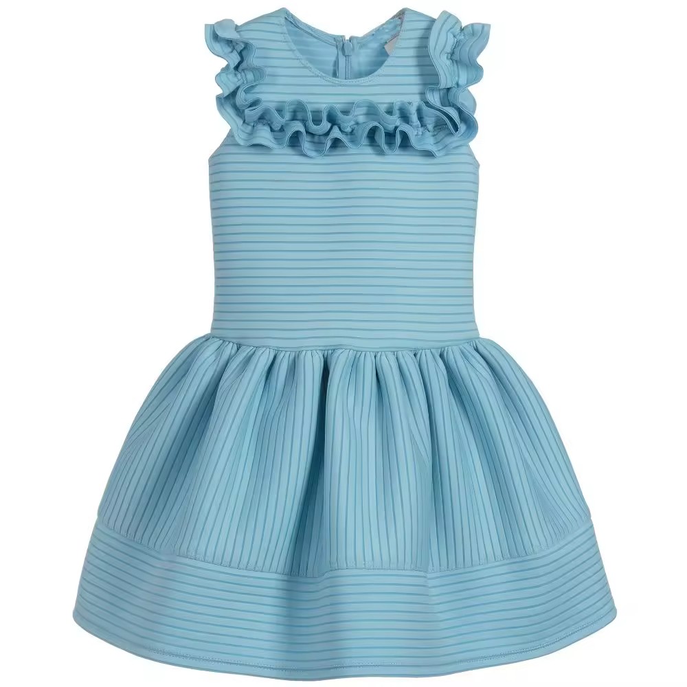 Top Fashion One Piece Girls Party Dress with Ruffle Design Formal Style for Age Group 7-11 Years Knee-Length for Spring