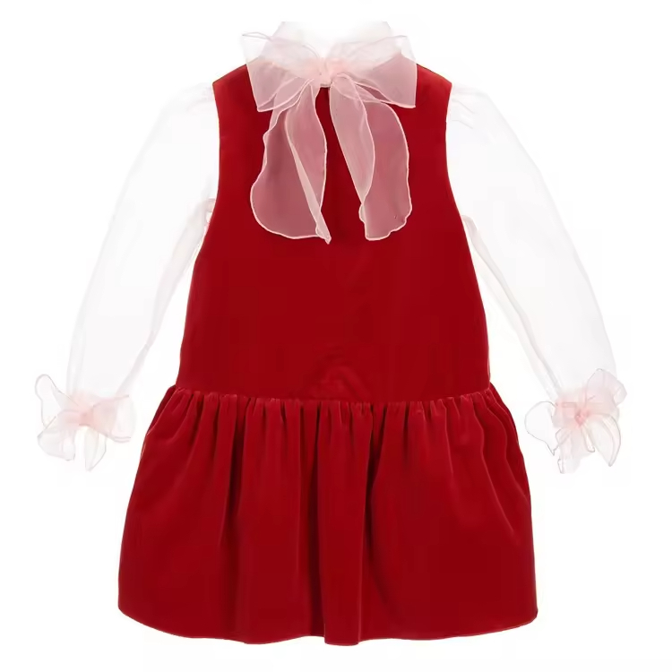 Spring Newest Style Girls Dress Long Mesh Sleeves Design European Style Guangzhou Wholesale