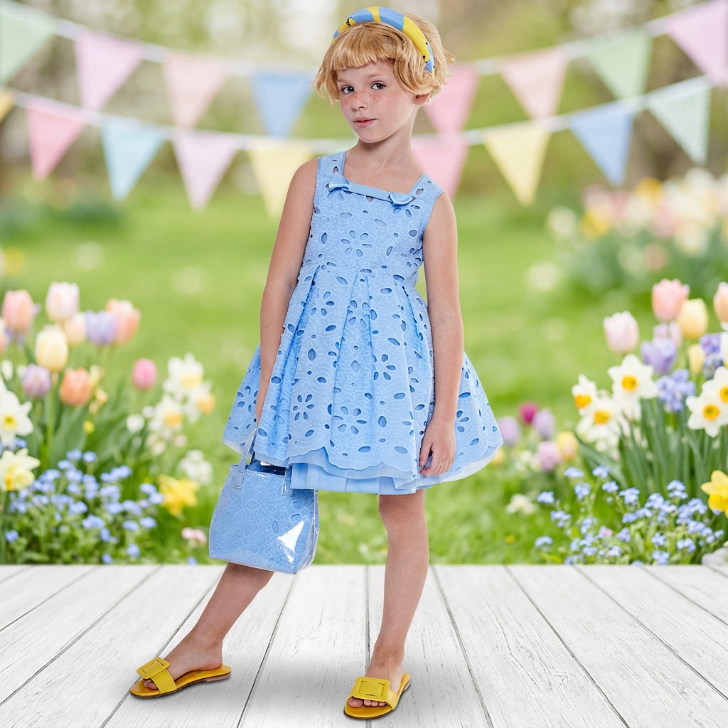 1.Girls Dress in White/black color, quality cotton fabric and a vintage style.