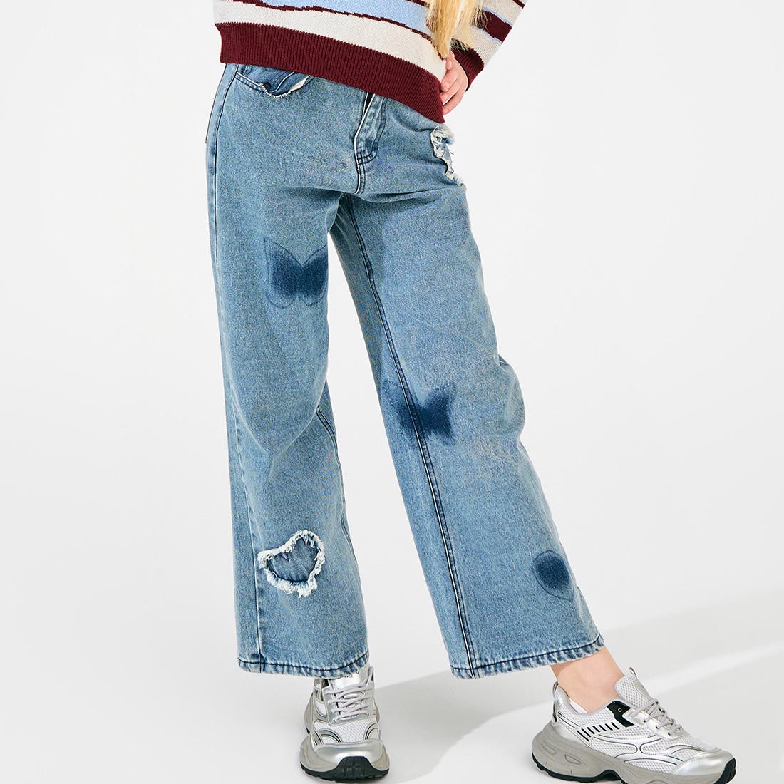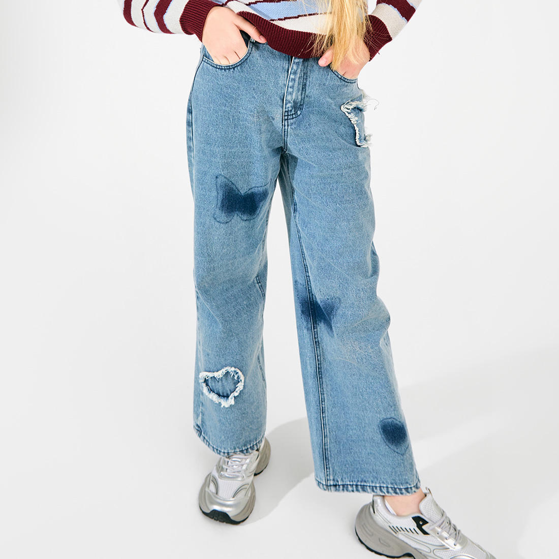 Guangzhou Factory Custom Plus Size Jeans Girls Casual Pants with Washed Techniques High Quality Kids Clothing
